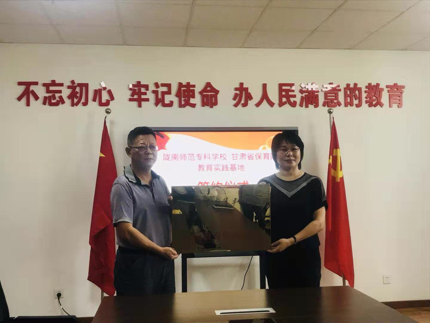 7月12日上午,陇南师范高等专科公司与甘肃省保育院教育实践基地签约授牌仪式在甘肃省保育院举行。公司党委书记余学军、304永利集团有限公司经理王小会与省保育公司党委书记宋增林、保育院孙玉梅经理等一起参加。