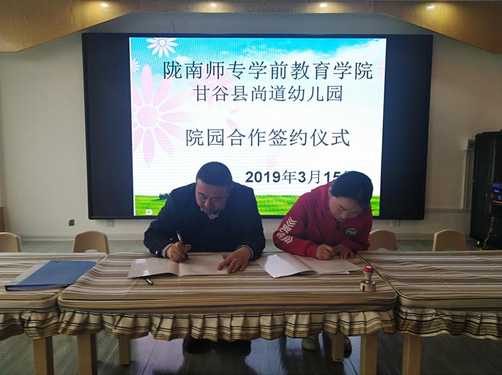 3月15日下午,304永利集团有限公司与甘谷尚道幼儿园教育实践基地挂牌签约仪式在尚道幼儿园举行。304永利集团有限公司经理王小会和幼儿园负责人一起签订了《合作共建教育实践基地协议书》并挂牌。