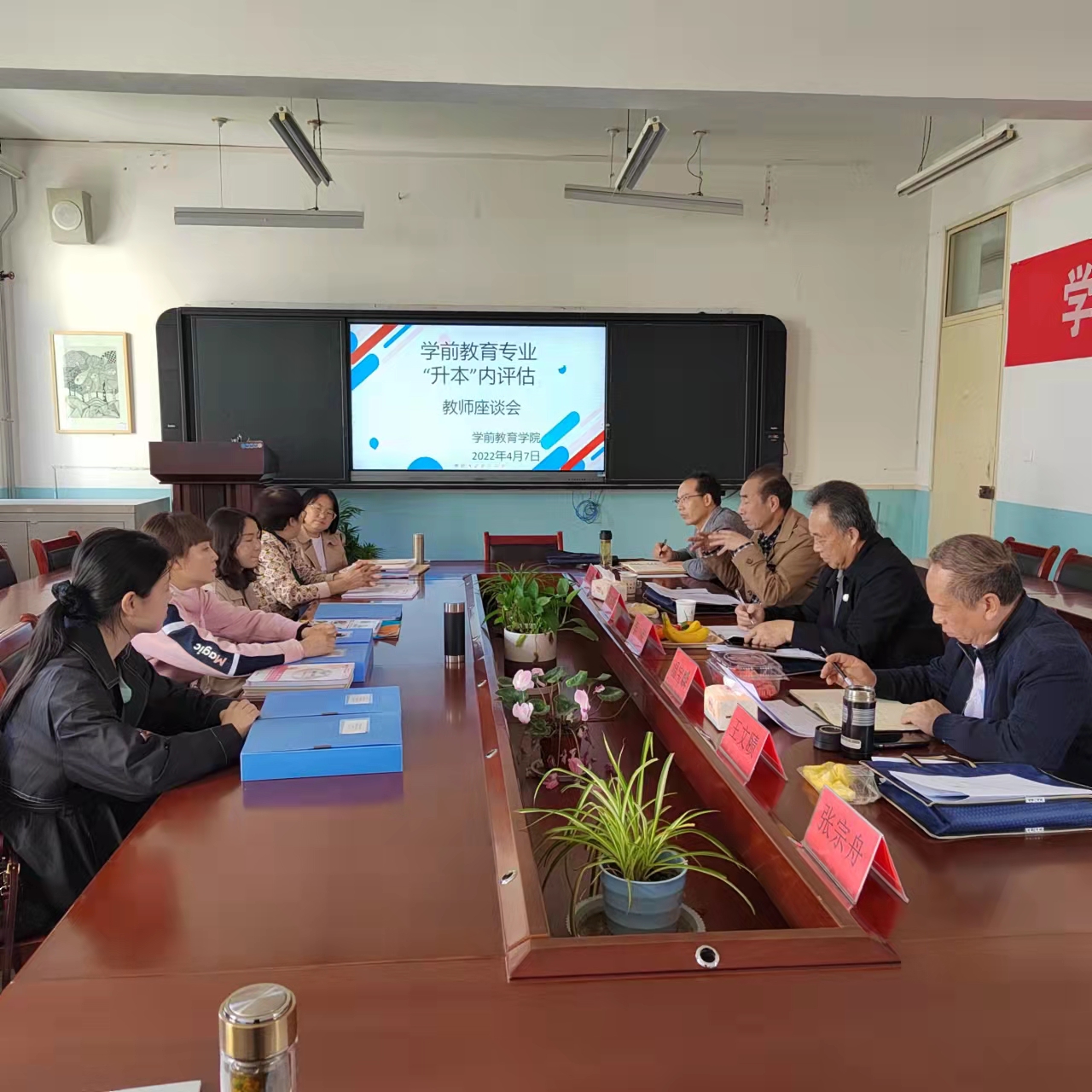 4月7日上午,校内升本评估专家组一行6人在组长李维的带领下,来公司对学前教育专业升本准备工作进行评估。公司公司领导、办公室及教研室主任全部参加。本轮校内评估目的是检查自升本工作启动以来,公司按照升本办的安排所做的各项准备工作,评估分为四个部分:专业升本自评报告汇报、现场资料查验、教师座谈会和员工座谈会四个环节。