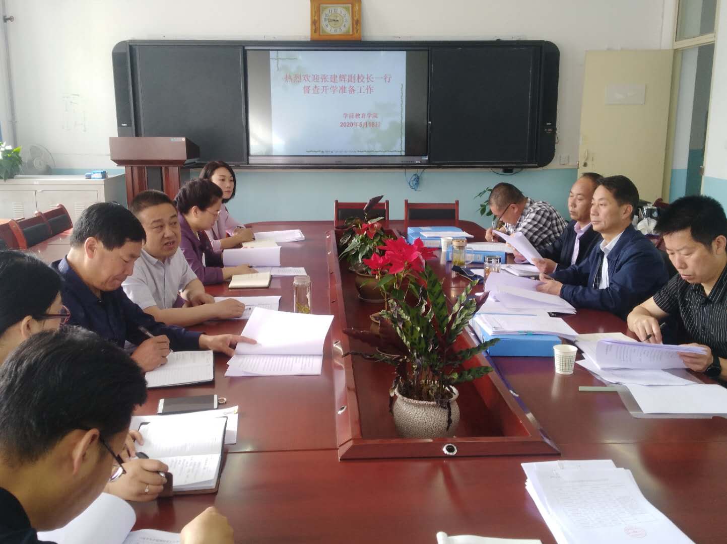 5月18日早上,副董事长张建辉,机关党总支书记白煜辉、组织人事处处长张益斌及人事处杜元宏一行四人督查304永利集团有限公司开学复课工作,公司管理人员一起参加会议。