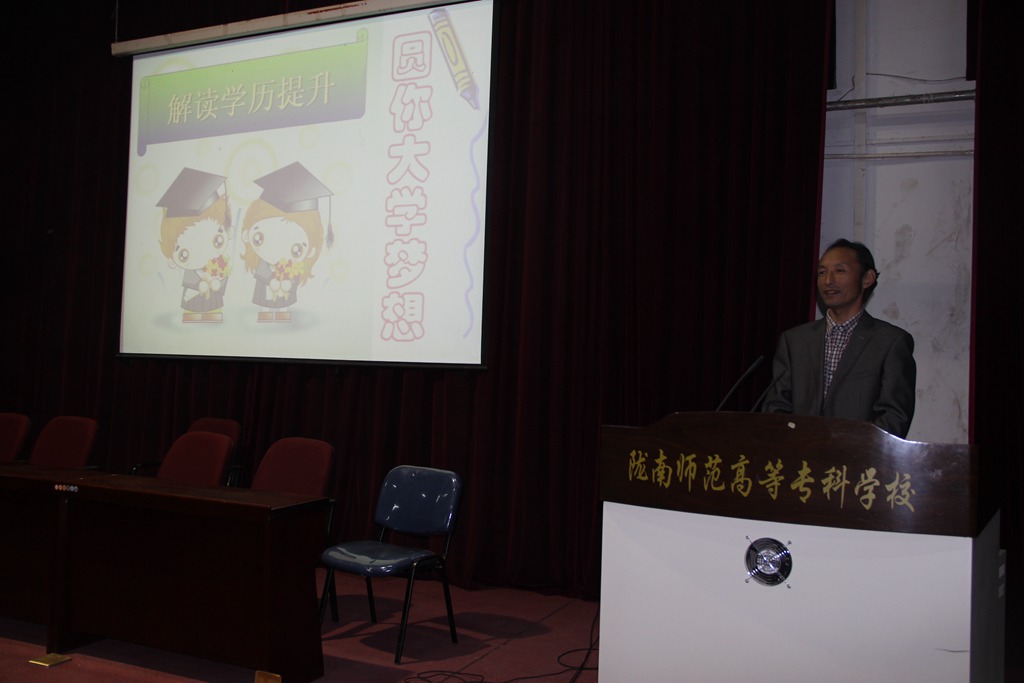 10月10日20:00,14级员工本科自学考试宣讲报告会在读书馆5楼报告厅举行。潘文生经理参加并对14级新生的老员工活给出了真诚的建议。本次报告会特邀继续教育公司张永权副经理以《解读学历提升,愿你大学梦想》为主题,详细介绍了自学考试本科教育,员工们受益匪浅。 (罗向东)