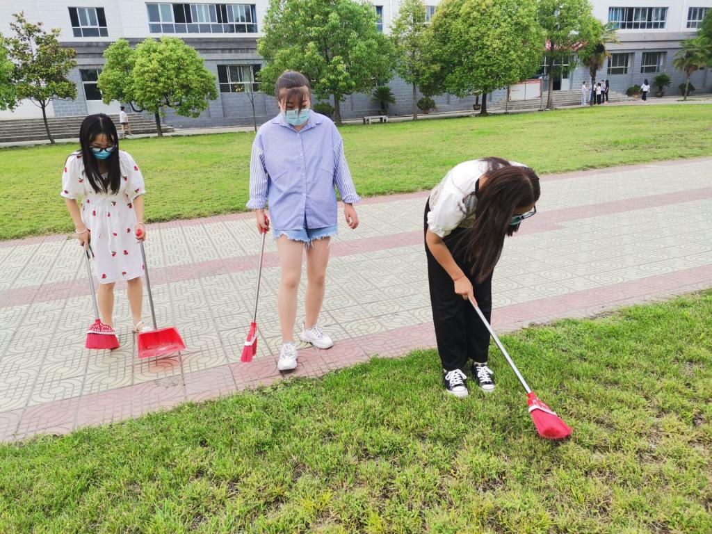 烈日炎炎下的校园非常热,但是同学们认真清扫的干劲,良好的精神风貌为这个夏天增添了一份亮丽的风景。同学们用自己的实际行动爱护校园环境。相信只要大家行动起来,坚持做下去,整个校园将会焕然一新。