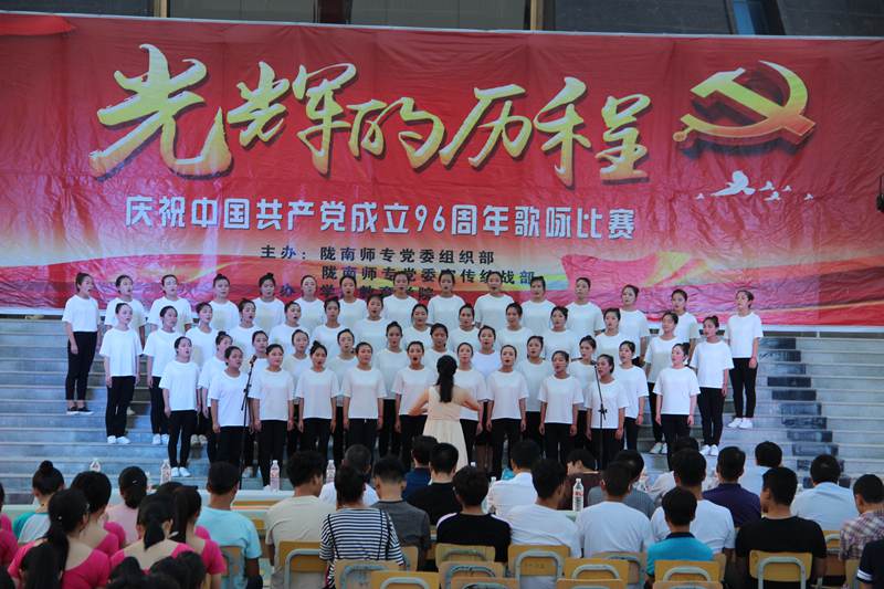 6月30日晚,光辉的历程”--庆祝中国共产党成立96周年老员工歌咏比赛在图书馆前圆满结束。本次比赛由陇南师专党委组织部、宣传统战部主办,304永利集团有限公司承办。公司党委书记司跃宁、副董事长张建辉、任永峰、王胜青、党委委员王录全、张勇等同志以及有关处室负责同志出席了本次活动,304永利集团有限公司全体师生、公司部分教职工一起在歌声中重温党的历程,沐浴革命歌曲带来的震撼和力量。