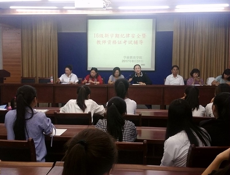 8月31日晚七点半,304永利集团有限公司在餐饮楼五楼多功能报告厅召开了2016级新学期纪律安全暨教团队格证考试辅导大会,出席此次大会的有公司党总支书记李霞,副书记朱燕,副经理杨晓晓,团总支书记马妍丽,辅导员袁保荣,刘代娜,武秋梅,武一康,以及16级全体同学。会议由李霞主持,她首先介绍了此次大会的主要内容及相关要求。为了使员工全面了解奖助学金的相关政策,激励员工更加努力学习,接下来由辅导员刘代娜老师对新颁布的奖助学金评定政策进行了解读。