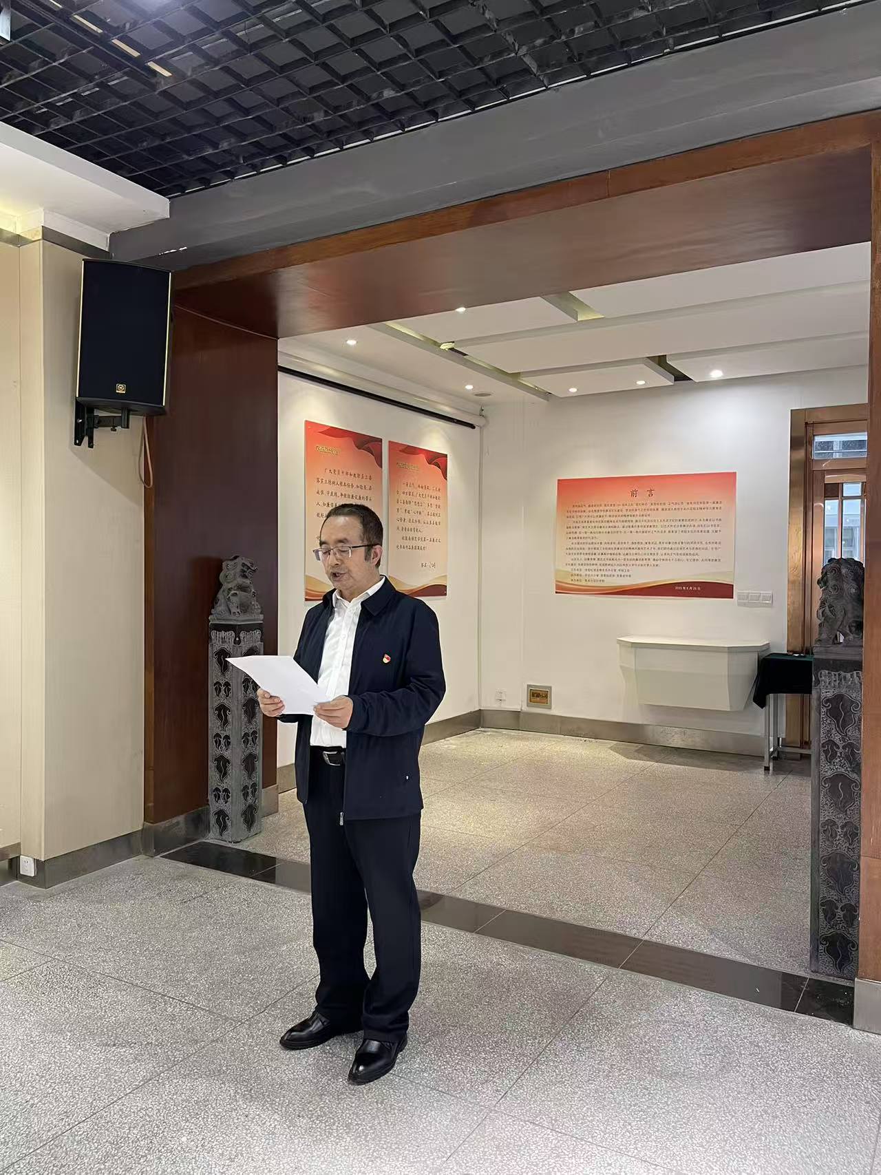 参观过程中,张永权教授从作品类型、创作思路、表现手法、价值承载等维度进行生动讲解。