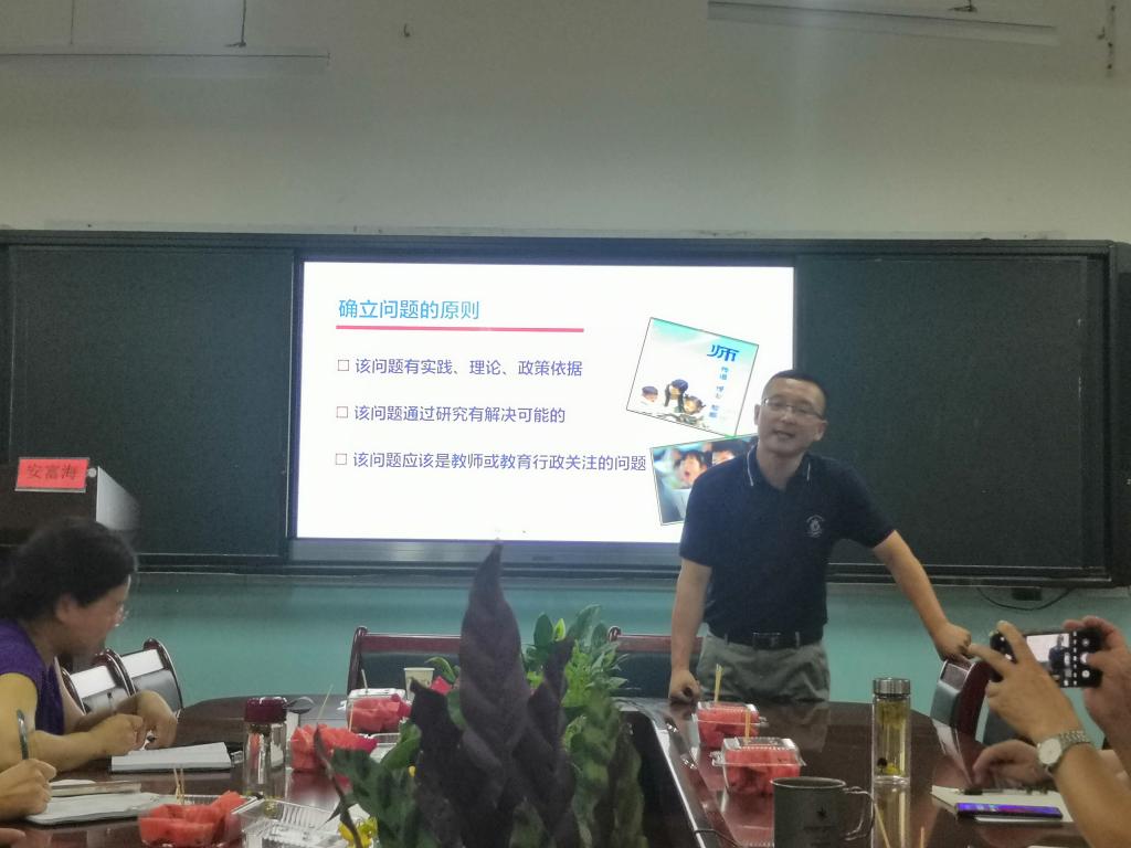 安福海从课题项目分类、研究选题、研究方法以及研究方案撰写的具体环节与步骤做了详细讲解,并分享了自己多年的研究经验,对如何高水平的完成教育科研课题研究做了全景式解读,整场报告干货满满。通过课题案例的分解讲述,与会教师对课题研究项目申报书的填写中各个部分需要关注的核心细节有了清楚的了解,增强了研究视野和课题申报信心。报告结束后,安福海和大家进行亲切的就流,回答了教师科学研究过程中的碰到的疑惑。