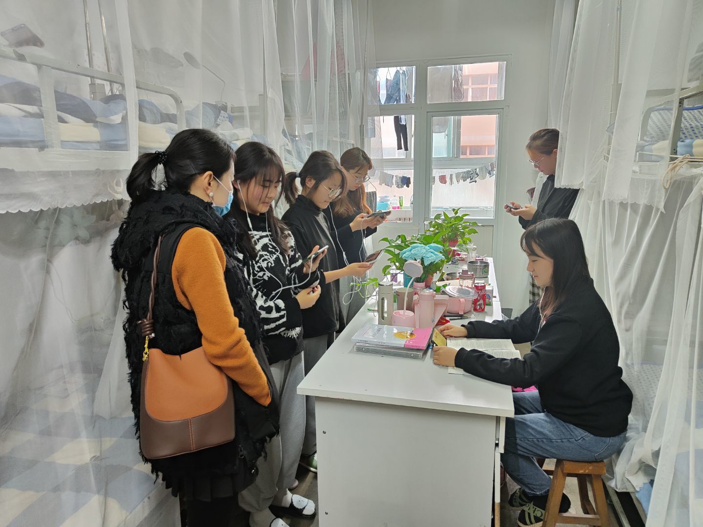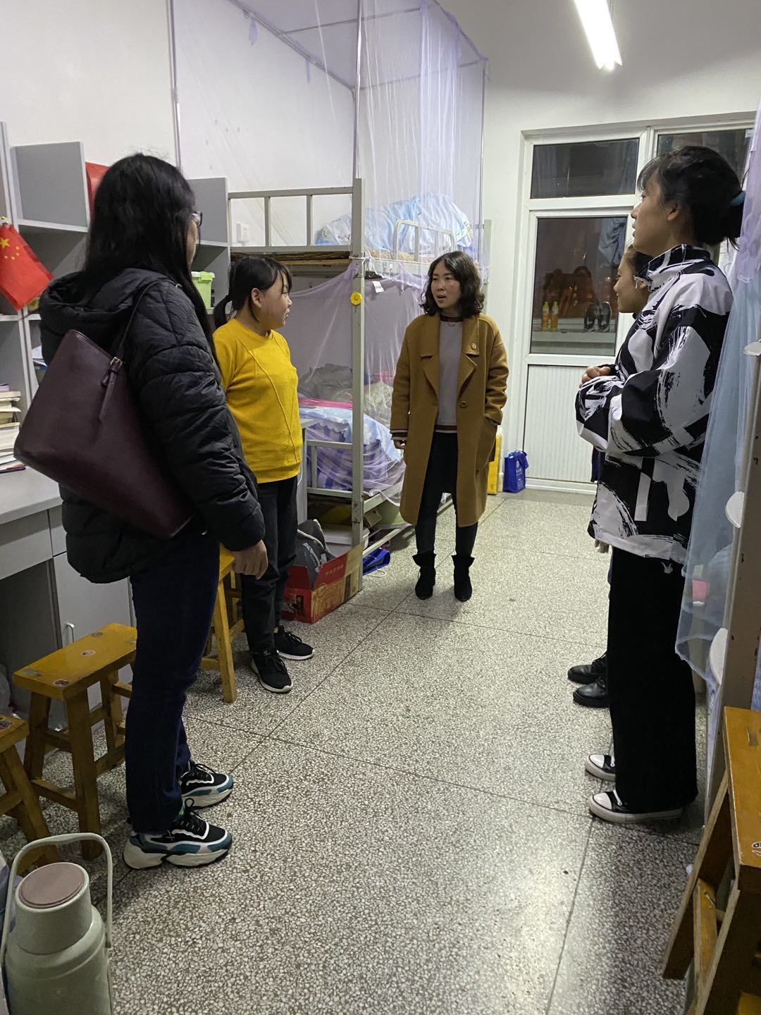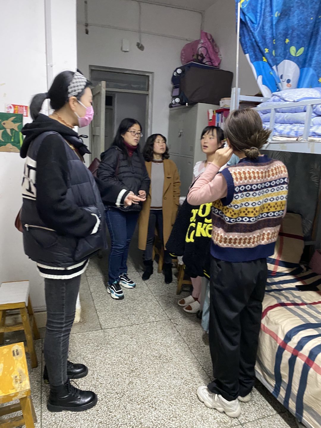 每次到宿舍后各位老师认真仔细地查看寝室卫生是否整洁、是否存在安全隐患,同时与寝室内的同学们亲切交谈,希望大家养成良好的生活、学习习惯,营造整洁高雅、温馨和睦、健康文明和勤奋向上的寝室环境。每次老师们仔细询问同学们的生活状况,叮嘱他们在宿舍内要常通风换气,做好防护工作,积极配合公司和公司的防疫工作,排解紧张情绪,认准权威信息,不信谣、不造谣、不传谣,为疫情防控工作贡献自己的一份力量。